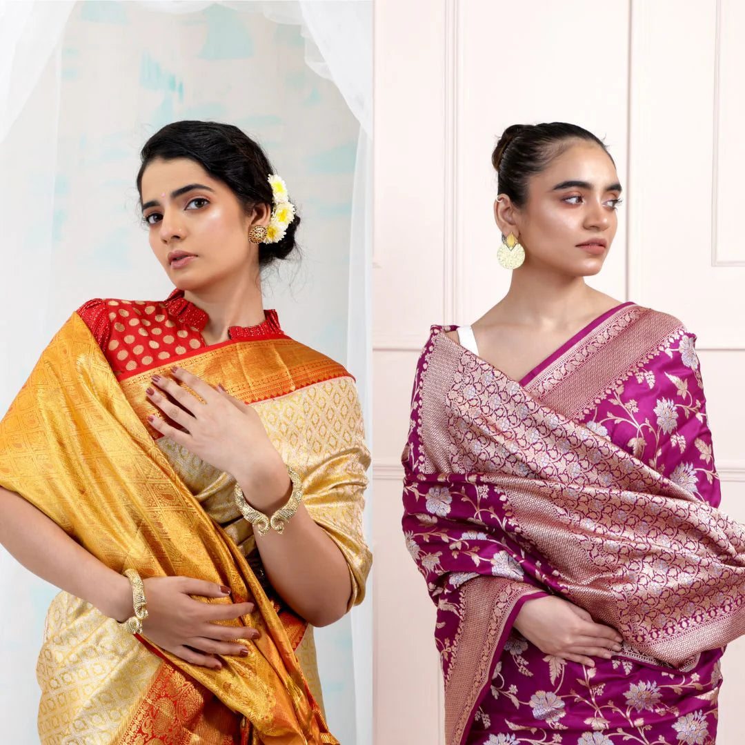 ResetThe world of your wardrobe is ready for a new banarasi saree. Let’s explore saree designs that’d hold a special place in your heart.